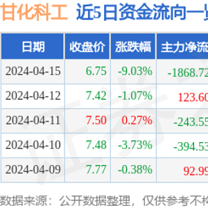 异动快报:甘化科工(000576)4月16日14点50分触及跌停板