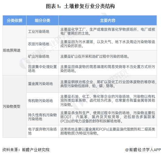 按照不同的场地用途类型或污染物类型可对土壤修复行业进行分类。