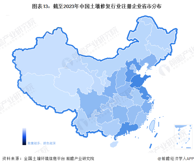 全国已在建设用地土壤污染风险管控和修复从业单位和个人执业情况信用记录系统注册的超过1万家从业单位中,分布在山东、广东、江苏级河北等地区土壤修复企业数量较多,其中,山东省已在系统注册土壤修复企业数量超过700家,广东和江苏均超过600家。