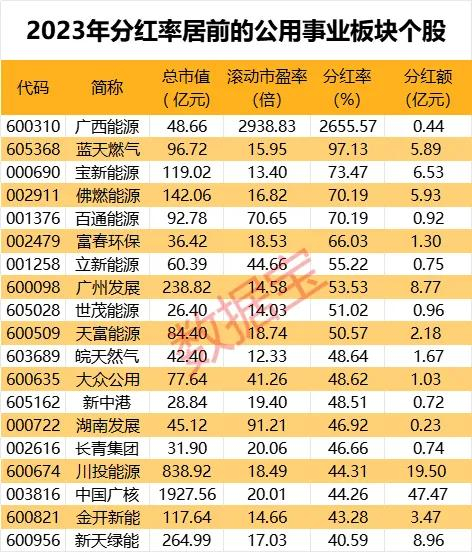 数据丨公用事业板块成分红集中营,低估值高股息股出炉(名单)