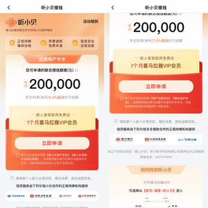 这也意味着,喜马拉雅并不掌握放款、风控等,只停留在导流层面。这是因为,截至目前,喜马拉雅旗下并无主体取得相关金融类牌照。而为了推广信贷业务,喜马拉雅还联合助贷方送福利,新人首笔取用贷款免费送1个月喜马拉雅会员。
