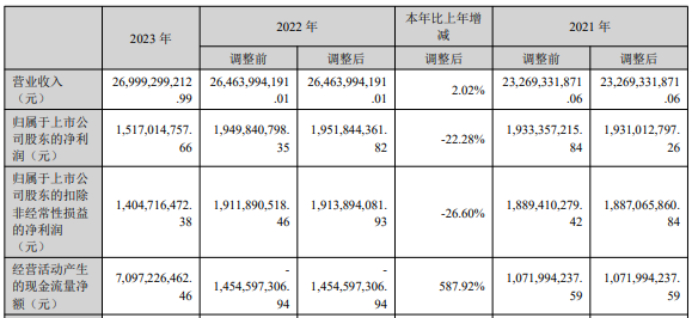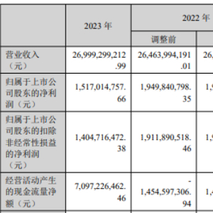 挖贝网4月16日,天健集团 近日发布2023年年度报告,报告期内公司实现营业收入26,999,299,212.99元,同比增长2.02%;归属于上市公司股东的净利润1,517,014,757.66元,同比下滑22.28%。