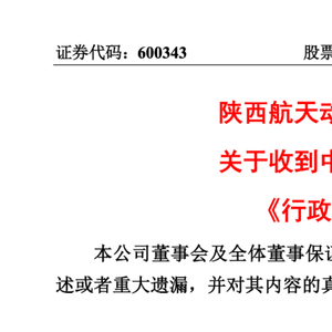 2023 年 6 月 2 日,公司收到中国证监会出具的《行政处罚和市场禁入事先 告知书》 (处罚字[2023]35 号)。具体内容详见公司于 2023 年 6 月 3 日在《上海 证券报》、上海证券交易所网站(www.sse.com.cn)披露的《航天动力关于收到 中国证券监督管理委员会〈行政处罚和市场禁入事先告知书〉的公告》(公告编号:临 2023-016)。