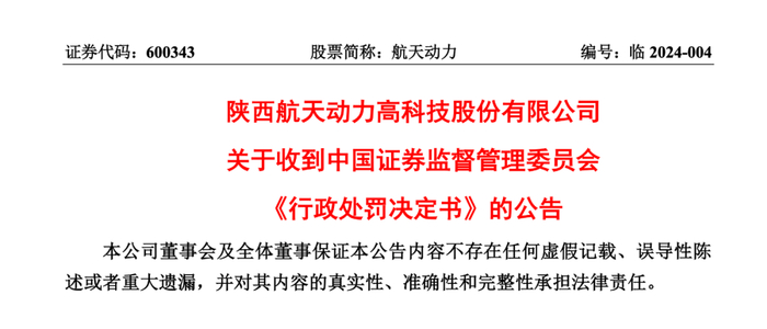 1.责令陕西航天动力高科技股份有限公司改正,给予警告,并处以 600 万