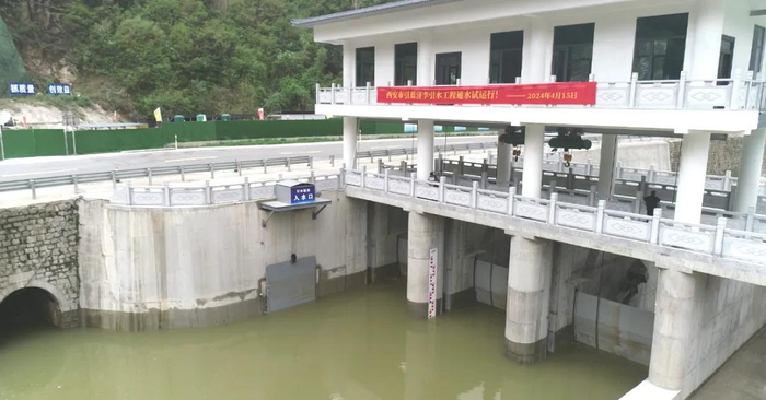 一汪清澈的蓝桥河水瞬间涌入引水隧洞