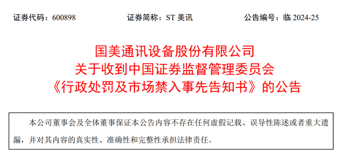 2024年4月15日,国美通讯收到中国证监会出具的《行政处罚及市场禁入事先告知书》(处罚字〔2024〕52号),相关内容主要为: