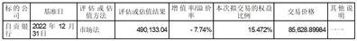 根据中威正信出具的《估值报告》,以2022年12月31日为估值基准日,标的公司的母公司口径所有者权益账面价值为531,262.39万元,估值为490,133.04万元,减值41,129.35万元,减值率7.74%。具体情况如下: