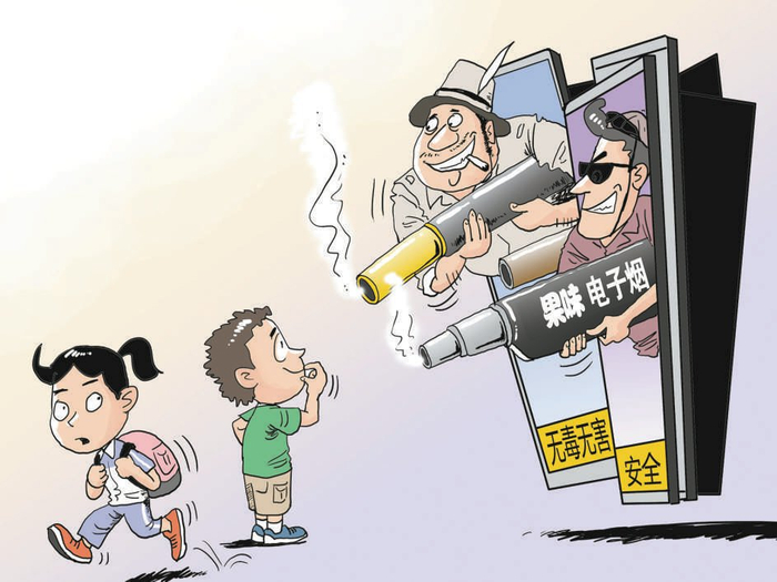 电子烟产品问世之初,因其口味的多元化,加上“帮助戒烟”“对健康无害”的误导性宣传,迅速吸引了不少人,其中不乏一些青少年。迷你“奶茶杯”“可乐罐”“星球杯”等可爱造型,再加上水果、咖啡、茶等新奇口味,让人们忽视了电子烟的危害。实际上,电子烟是一种电子雾化器,通过内置电池加热的方式将含有尼古丁的烟油雾化后供人吸食,以达到吸烟的满足感,本质上与传统卷烟无异。国家卫健委发布的《中国吸烟危害健康报告2020》也指出,有充分证据表明,电子烟是不安全的,会对健康产生危害,还会对青少年的身心健康和成长造成不良后果,同时会诱导青少年使用卷烟。