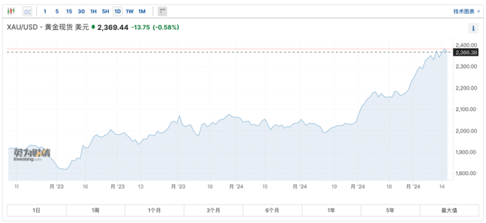 当前,国际黄金正掀起一轮大牛市,国际金价不断刷新历史高点,4月12日,现货黄金一度涨至2431.53美元/盎司,创出历史最高纪录,年内最大涨幅达17.9%。