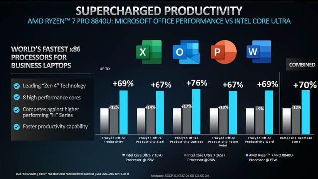 AMD介绍,预计从今年第二季度开始,惠普和联想的产品将启用上述芯片新品。其中,锐龙PRO 8040 系列移动处理器预计二季度开始由惠普和联想等OEM合作伙伴提供。锐龙PRO 8000系列的台式机处理器预计将从二季度开始在惠普和联想以及AMD精选渠道合作伙伴的平台提供。