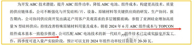 官方更是在2023年中报里公开宣布:到2024年6月,ABC电池+组件的成本将会与TOPCon打平。