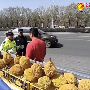 上午12点多,在北京北路北辰一街路段,有四五辆微型货车停靠在道路两边,车上大多装载着水果,流动摊贩们将该路段变成了马路市场。