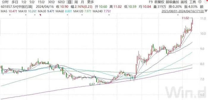 从近期持续上涨的能源板块个股表现来看,中国神华上涨1.58%,股价续创历史新高。中国石油亦大涨2.16%,股价创2015年7月以来新高。