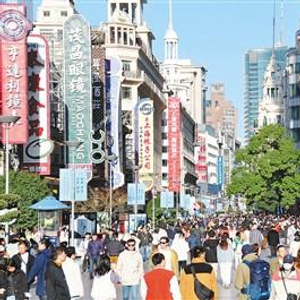 上海南京路集中了众多大型购物中心,是该市重要商圈之一。图为近日的南京路步行街。 严大明摄(人民视觉)