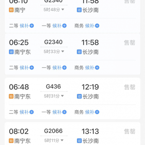 4月30日南宁往长沙方向,多趟高铁、动车车票已售罄。