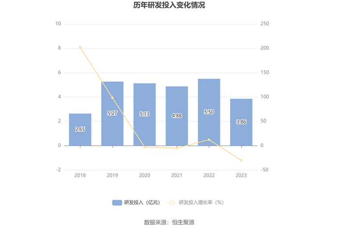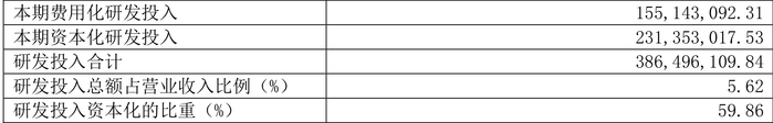 2023年全年,公司研发投入金额为3.86亿元,同比下降29.70%;研发投入占营业收入比例为5.62%,相比上年同期下降1.05个百分点。此外,公司全年研发投入资本化率为59.86%。