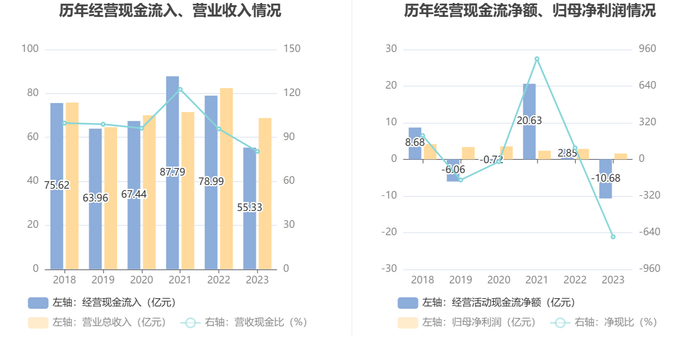 进一步统计发现,2023年公司自由现金流为-13.14亿元,上年同期为5.93亿元。