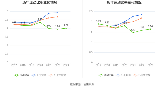 2023年,公司流动比率为2.02,速动比率为1.64。