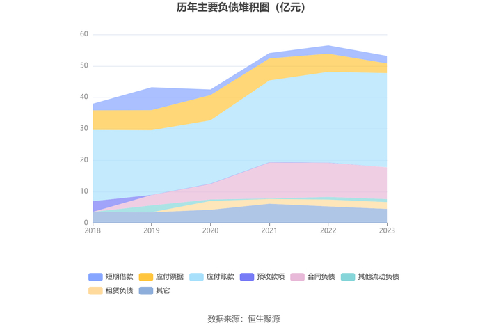 负债重大变化方面,截至2023年年末,公司应付票据较上年末减少46.96%,占公司总资产比重下降1.93个百分点;应付账款较上年末增加3.71%,占公司总资产比重上升1.24个百分点;合同负债较上年末减少7.20%,占公司总资产比重下降0.41个百分点;应交税费较上年末减少38.73%,占公司总资产比重下降0.28个百分点。