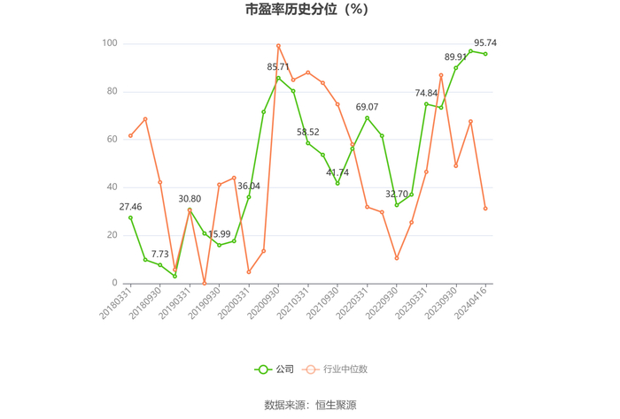 市盈率为负时,不显示当期分位数,会导致折线图中断。