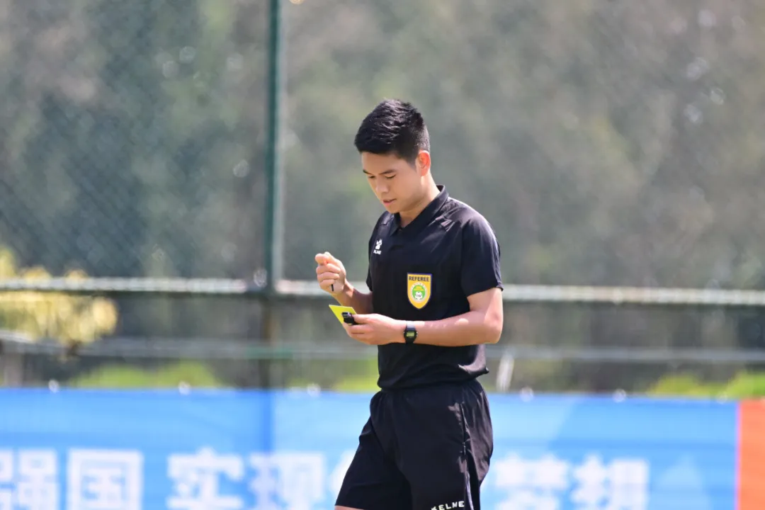 周潇,2020年参加国家级裁判员培训班,2022年晋升中国足球乙级联赛裁判员。