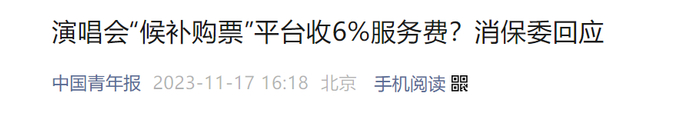 事实上,早在2023年11月,大麦网就因候补门票手续费引发广泛争议。