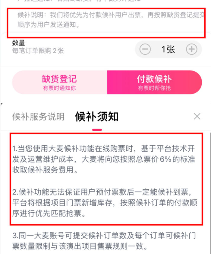 大麦网推出了候补下单功能