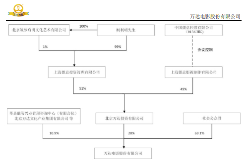 由于万达投资是万达电影的控股股东,“儒意系”借此间接控股了万达电影。“儒意系”实控人柯利明通过上述方式,取代王健林成为万达电影实控人。