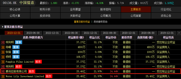 记者注意到,“儒意系”掌控了港股公司中国儒意,背后股东包括腾讯控股。