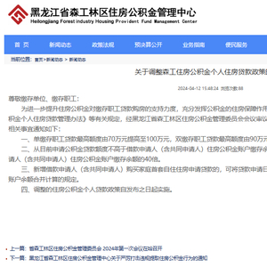 黑龙江省森工林区调整住房公积金个人住房贷款政策