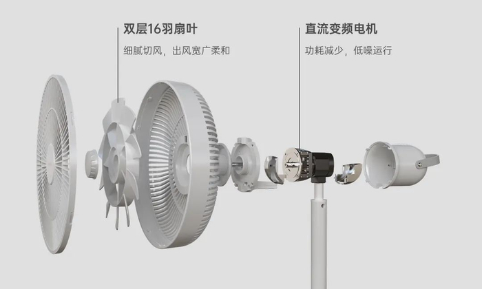 双层16羽扇叶细腻切风,出风范围宽广。