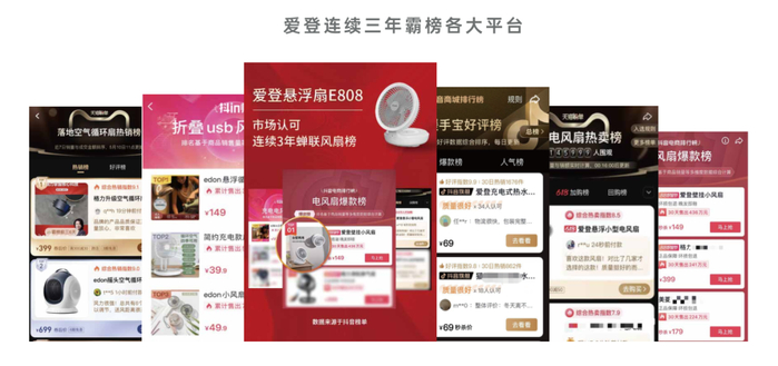 作为小家电品牌新起之秀,爱登风扇产品连续三年霸榜,品质得到了广大消费者的认可。