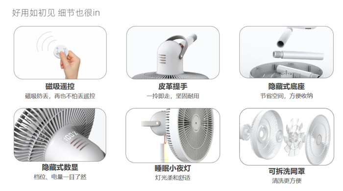 无线续航|高度可调|整屋循环|静音低噪|折叠收纳|睡眠夜灯|磁吸遥控