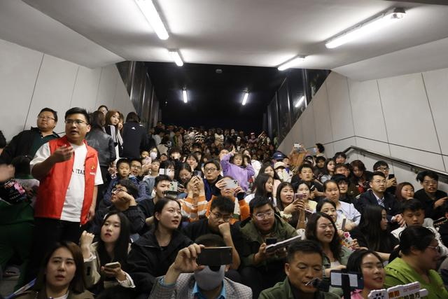 4月16日晚,南阳的陈女士第二次到涵洞口,为周围观众做引导,“我就在附近上班,短视频刷到这里有乐队驻唱,听了一次觉得气氛太好了,大家跟着合唱沉浸在那种氛围里,这是吸引我再来的原因。”