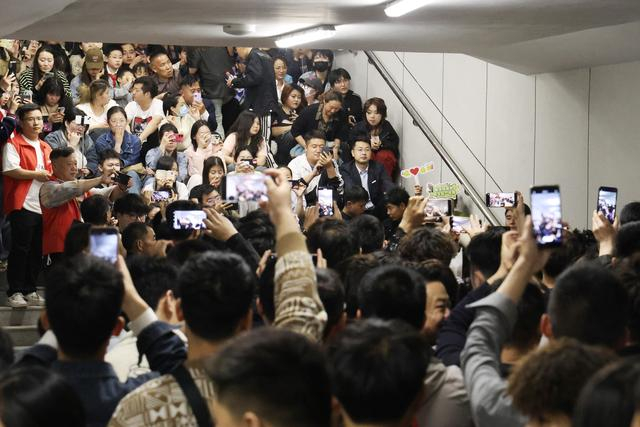 自涵洞口由上至下的三十余米,台阶上鳞次栉比坐着上千位从南阳各地赶来的观众,但这仅仅是来得最早的那批人,到涵洞下方,观众会发现人海延伸至走廊尽头,这意味着一整晚他们都要站着观看演出,排在后方的观众或许看不到乐手,但他们觉得“无所谓”。