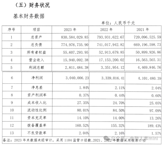 截至2023年末,广州银行总资产8305.84亿元。2023年,广州银行实现营业收入159.4亿元,同比下降7.07%;实现净利润30.4亿元,同比下降8.95%,净利润已经连续三年下滑。