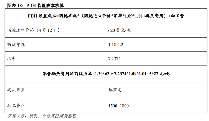 对于国内的PDH装置而言,丙烷占据PDH装置主要的成本来源,按照1.2的丙烷单耗以及1500元/吨的加工费核算,丙烷成本在PDH装置生成成本中占比79.8%。同时由于加工费用基本恒定,因此丙烷价格的波动基本上决定了PDH装置成本的波动。