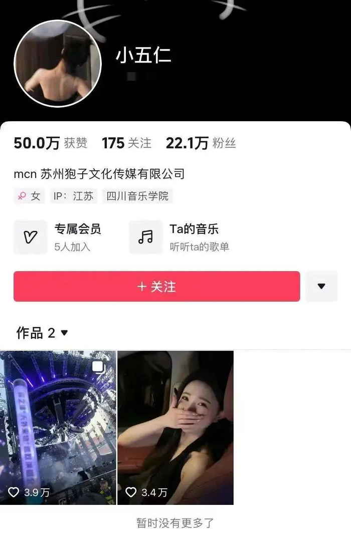 演唱会后,女观众的社交媒体账号也被网友扒出,目前粉丝数量超过20万,显示已签约MCN机构。