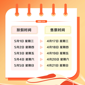 今天(4月17日),铁路开始发售5月1日、也就是“五一”假期的火车票。根据铁路12306提前15天出售车票的规定↓↓↓