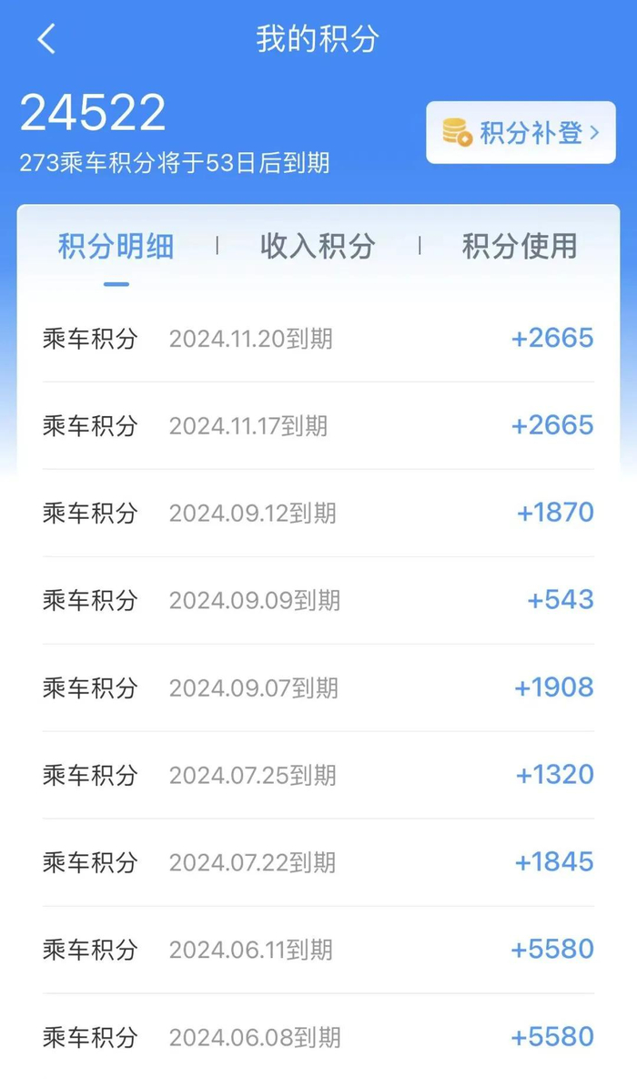 答:如发现乘车积分有遗漏,需在车票载明的开车日期后90日内(含当日)通过网站、车站会员服务窗口、铁路客户服务中心提交积分补登申请。