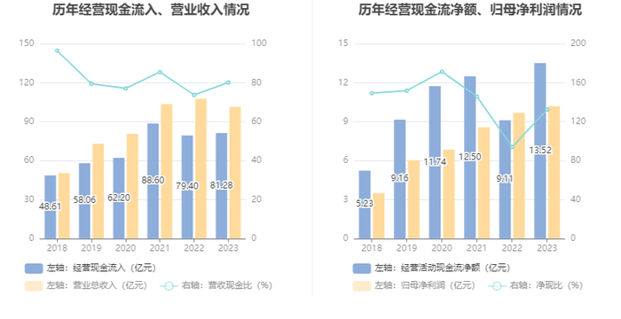 2023年,公司营业收入现金比为80.13%,净现比为132.48%。