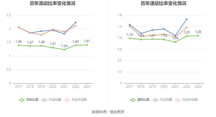 2023年,公司流动比率为1.41,速动比率为1.26。