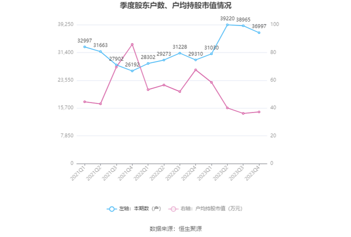 筹码集中度方面,截至2023年年末,公司股东总户数为3.7万户,较三季度末下降了1968户,降幅5.05%;户均持股市值由三季度末的36.18万元上升至37.25万元,增幅为2.96%。