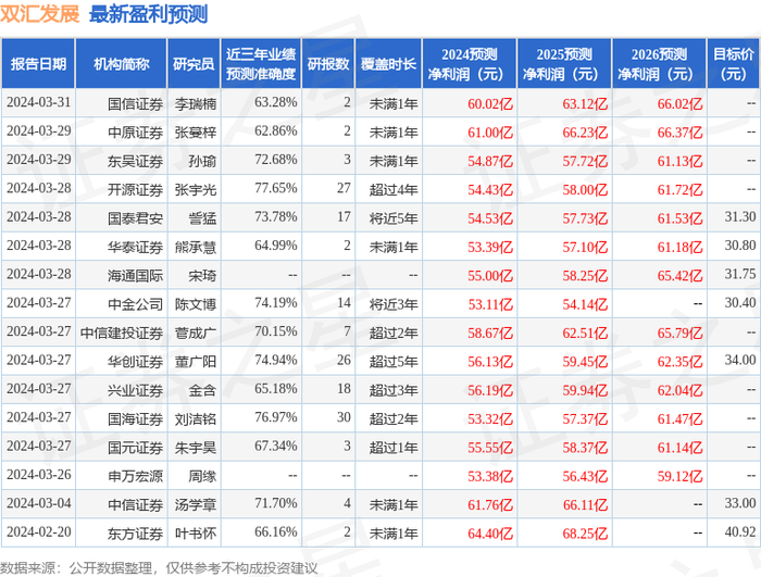 以下是详细的盈利预测信息: