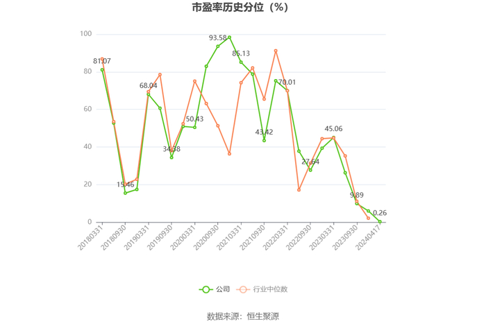 市盈率为负时,不显示当期分位数,会导致折线图中断。