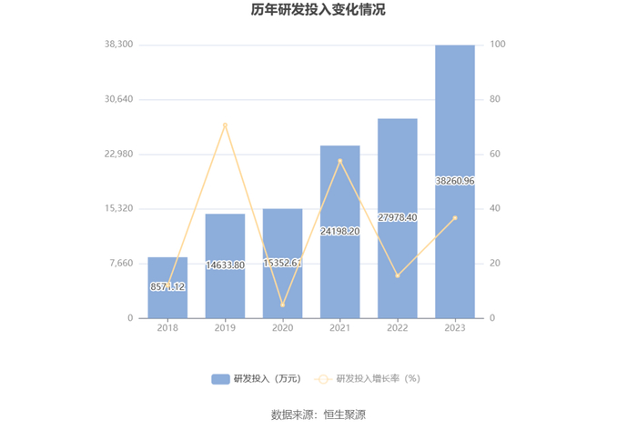 2023年全年,公司研发投入金额为3.83亿元,同比增长36.75%;研发投入占营业收入比例为42.09%,相比上年同期上升10.04个百分点。此外,公司全年研发投入资本化率为12.06%。
