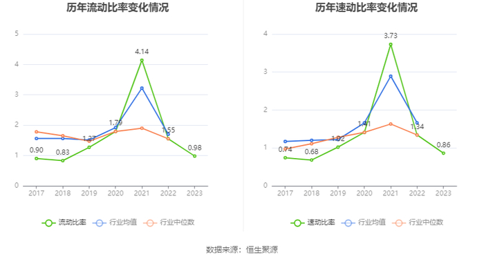 2023年,公司流动比率为0.98,速动比率为0.86。