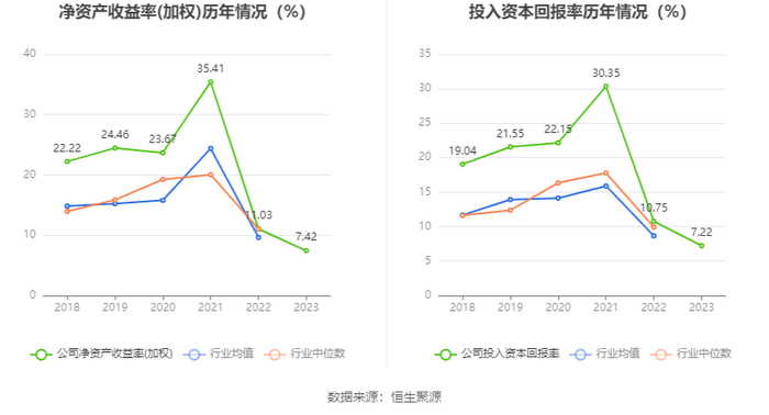 数据显示,2023年公司加权平均净资产收益率为7.42%,较上年同期下降3.61个百分点;公司2023年投入资本回报率为7.22%,较上年同期下降3.53个百分点。