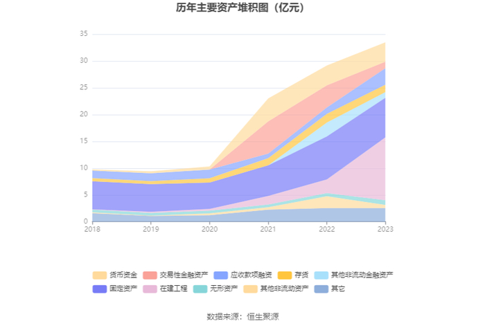 资产重大变化方面,截至2023年年末,公司在建工程较上年末增加358.59%,占公司总资产比重上升26.30个百分点;交易性金融资产较上年末减少70.73%,占公司总资产比重下降10.52个百分点;其他非流动资产较上年末减少72.91%,占公司总资产比重下降5.78个百分点;其他非流动金融资产较上年末减少59.86%,占公司总资产比重下降5.77个百分点。