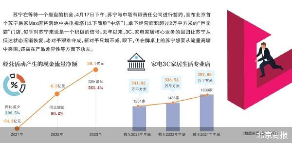 根据今年3月底苏宁发布的财报数据,2023年,苏宁经营活动产生的现金流量净额为29.1亿元,同比大增561.37%。此外,苏宁核心家电业务销售规模同比增长了11.9%,家用电器及消费电子业务实现毛利率为11.86%,同比提升了11.28%。